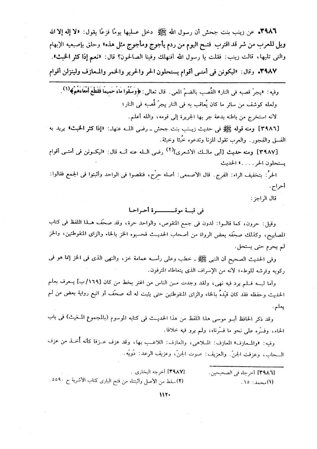 [3987] ومنه حديث [أبي مالك الأشعري] رضي الله عنه أنه قال: (ليكونن في أمتي أقوام يستحلون الحر ...) الحديث