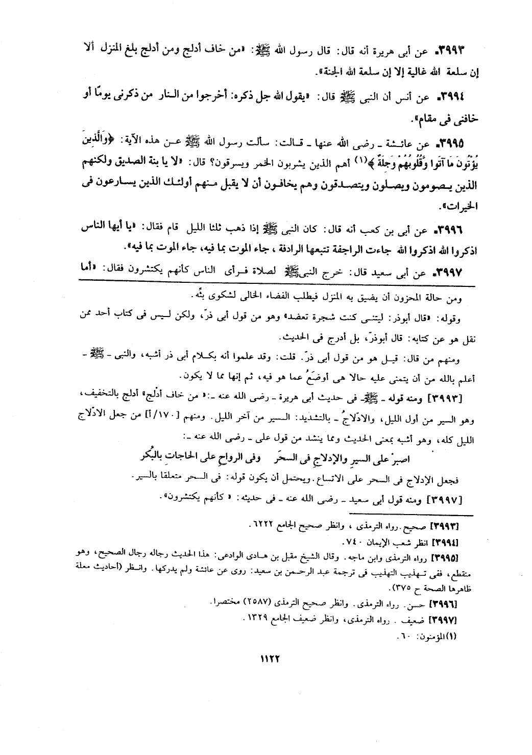 [3993] ومنه قوله - صلى الله عليه وسلم - في حديث أبي هريرة- رضي الله عنه-: (من خاف أدلج) أدلج بالتخفيف، وهو السير من أول الليل، والادلاج- بالتشديد: السير من آخر الليل. ومنهم [170/أ] من جعل الادلاج الليل كله، وهو أشبه بمعنى الحديث ومما ينشد من قول علي- رضي الله عنه-: