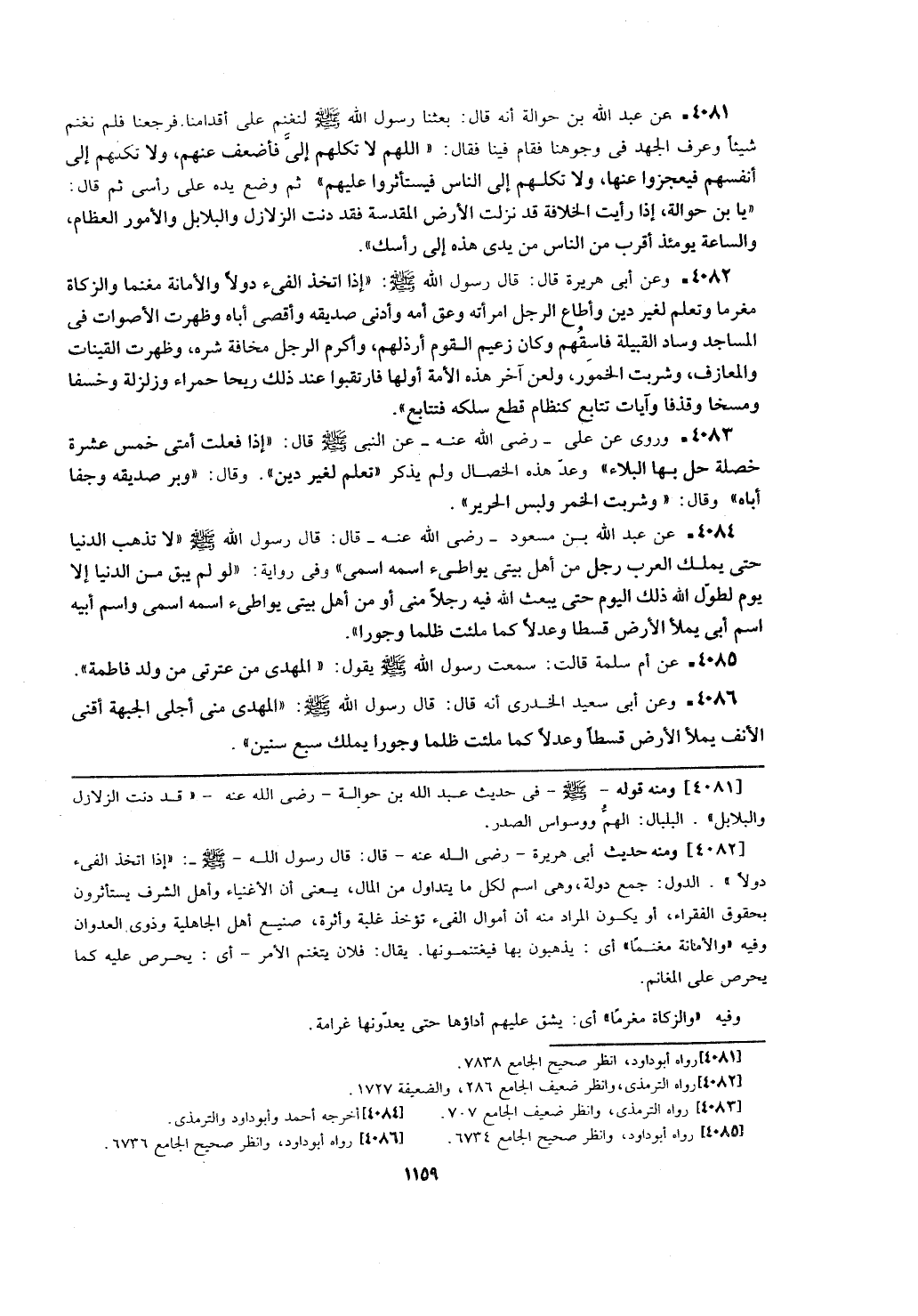 ] 4082 [ومنه حديث أبي هريرة -رضي الله عنه- قال: قال رسول الله - صلى الله عليه وسلم -: (إذا أتخذ الفئ دولا). الدول: جمع دولة، وهي اسم لكل ما يتداول من المال، يعني أن الأغنياء وأهل الشرف يستأثرون بحقوق الفقراء، أو يكون المراد منه أن أموال أن أموال الفيء تأخذ غلبة وأثرة، صنيع أهل الجاهلية وذوي العدوان وفيه (والأمانة مغنما) أي: يذهبون بها فيغتنمونها. يقال فلان يتغنم الأمر أي: يحرص عليه كما يحرص على المغانم.
