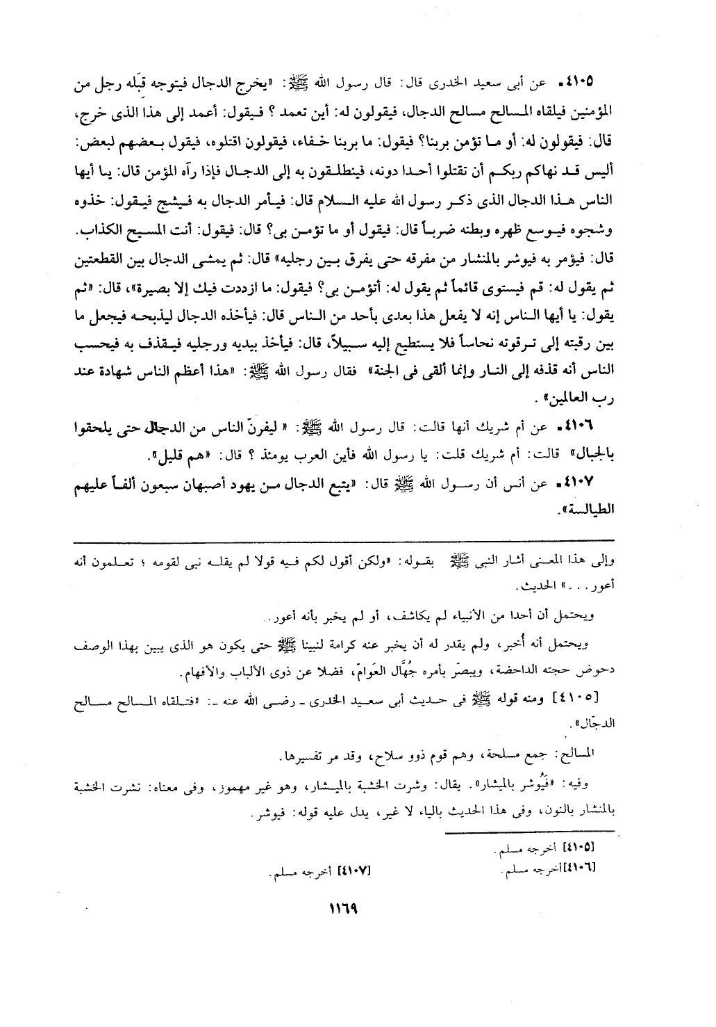 ] 4105 [ومنه قوله - صلى الله عليه وسلم - في حديث أبي سعيد الخدري -رضي الله عنه-: (فتلقاه المسالح مسالح الدجال).