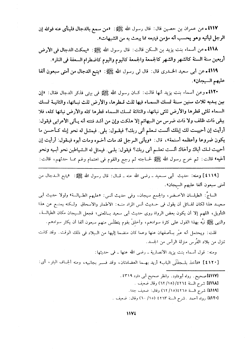[4119] ومنه حديث أبي سعيد -رضي الله عنه- قال: قال رسول الله - صلى الله عليه وسلم -: (يتبع الدجال من أمتي سبعون الفا عليهم السيجان).