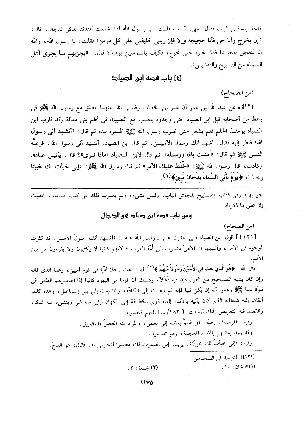 ] 4121 [قول ابن الصياد في حديث عمر -رضي الله عنه-: (أشهد انك رسول الأميين قد كثرت الوجوه في الأمي، وأشبهها أن الأمي منسوب الى أمة العرب؛ لأنهم كانوا لا يكتبون ولا يقرءون من بين الأمم.