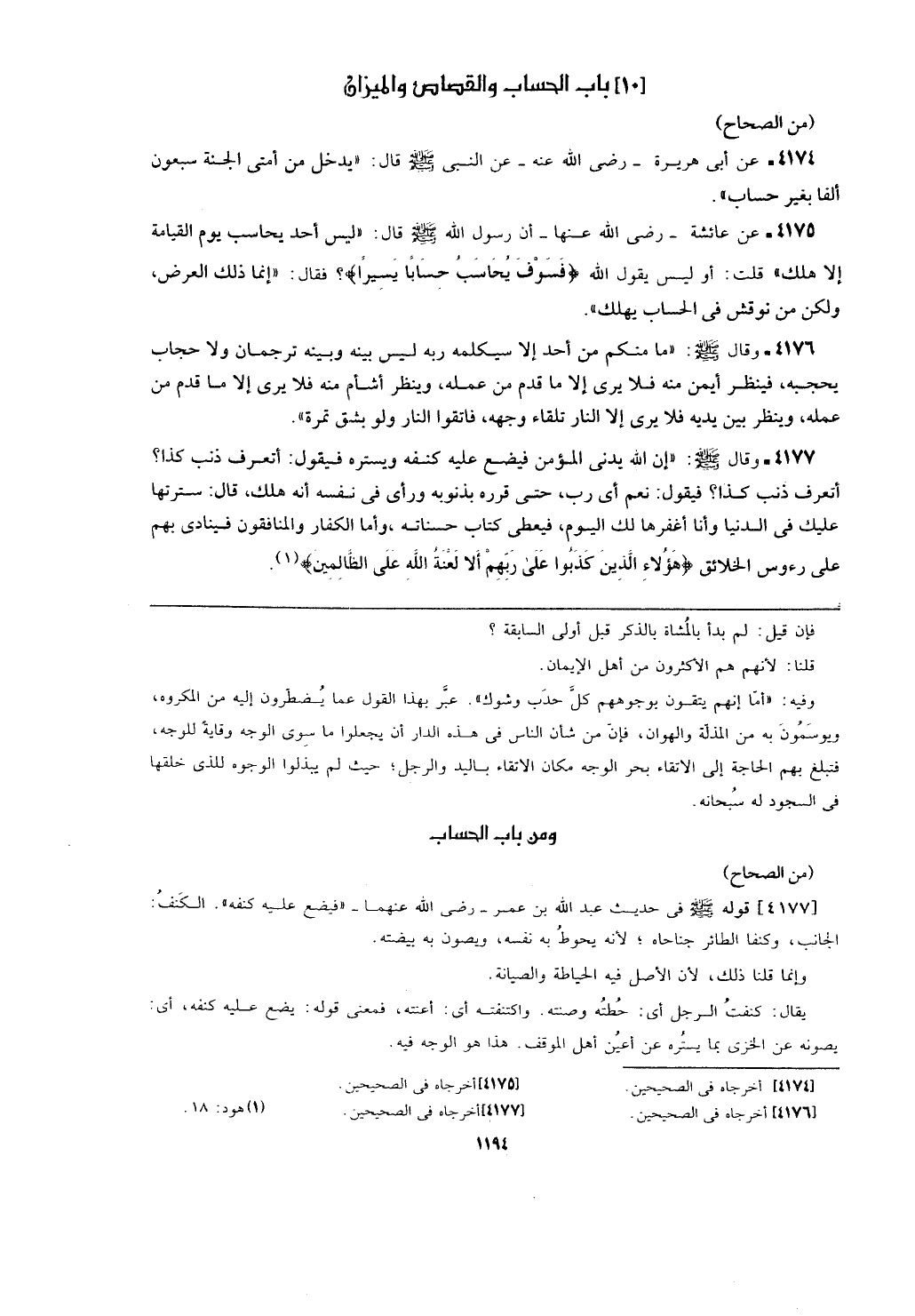 ومن باب الحساب