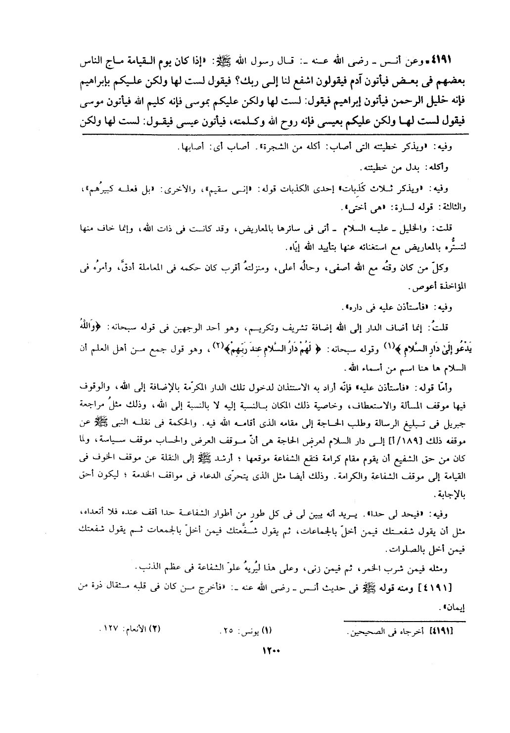 ] 4191 [ومنه قوله - صلى الله عليه وسلم - في حديث أنس -رضي الله عنه-: (فأخرج من كان في قلبه مثقال ذرة من إيمان).