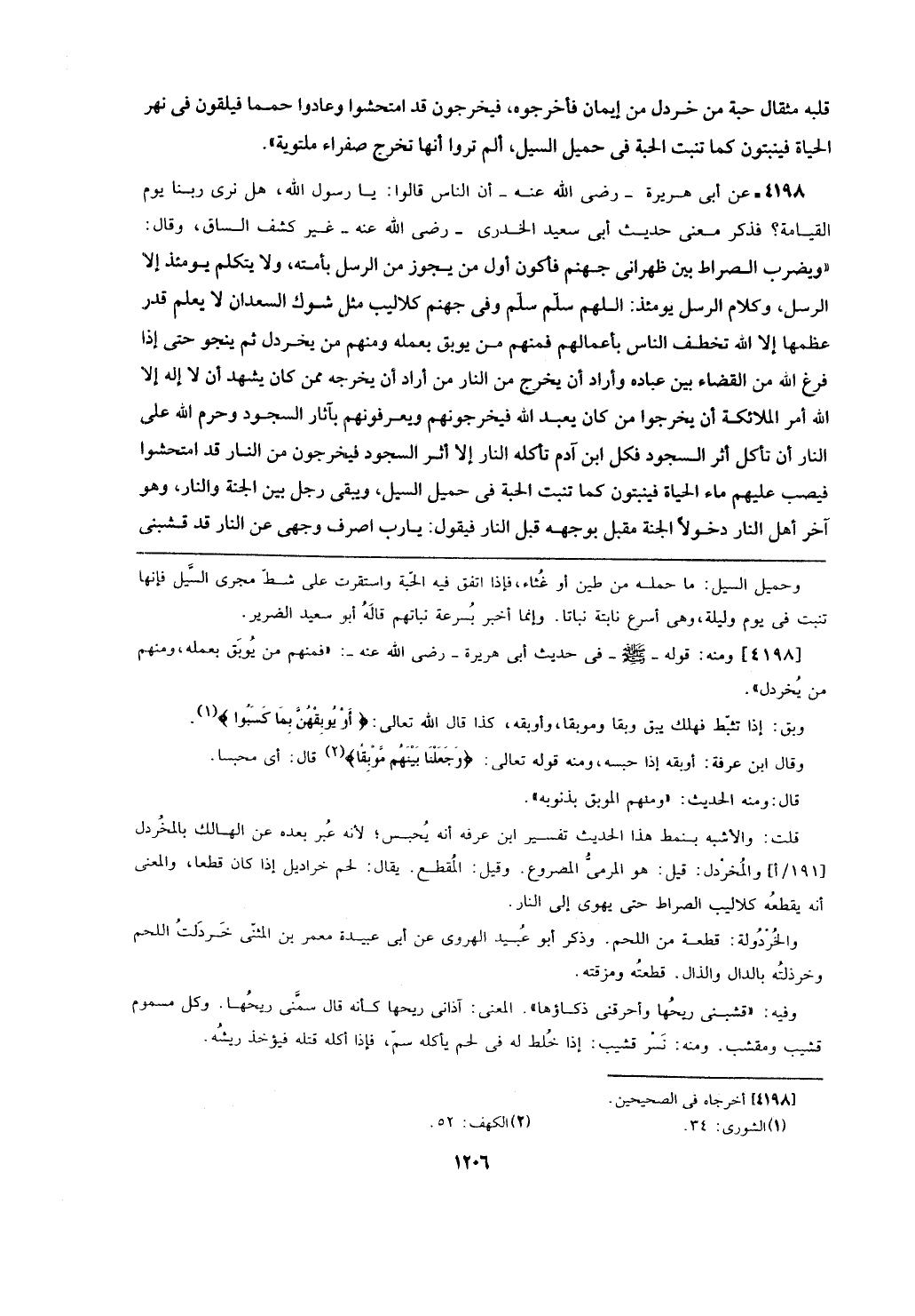 [4198] ومنه: قوله - صلى الله عليه وسلم - في حديث أبي هريرة- رضي الله عنه-: (فمنهم من يوبق بعلمه، ومنهم من يخردل).