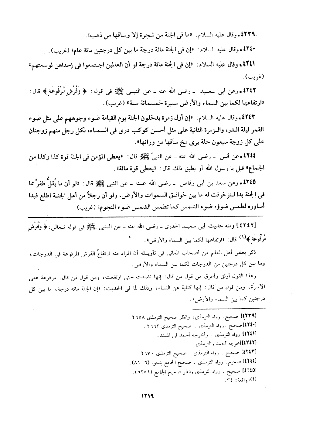 [4242] ومنه حديث أبي سعيد الخدري- رضي الله عنه- عن النبي - صلى الله عليه وسلم - في قوله تعالى: {وفرش مرفوعة} قال: (ارتفاعها لكما بين السماء والأرض).