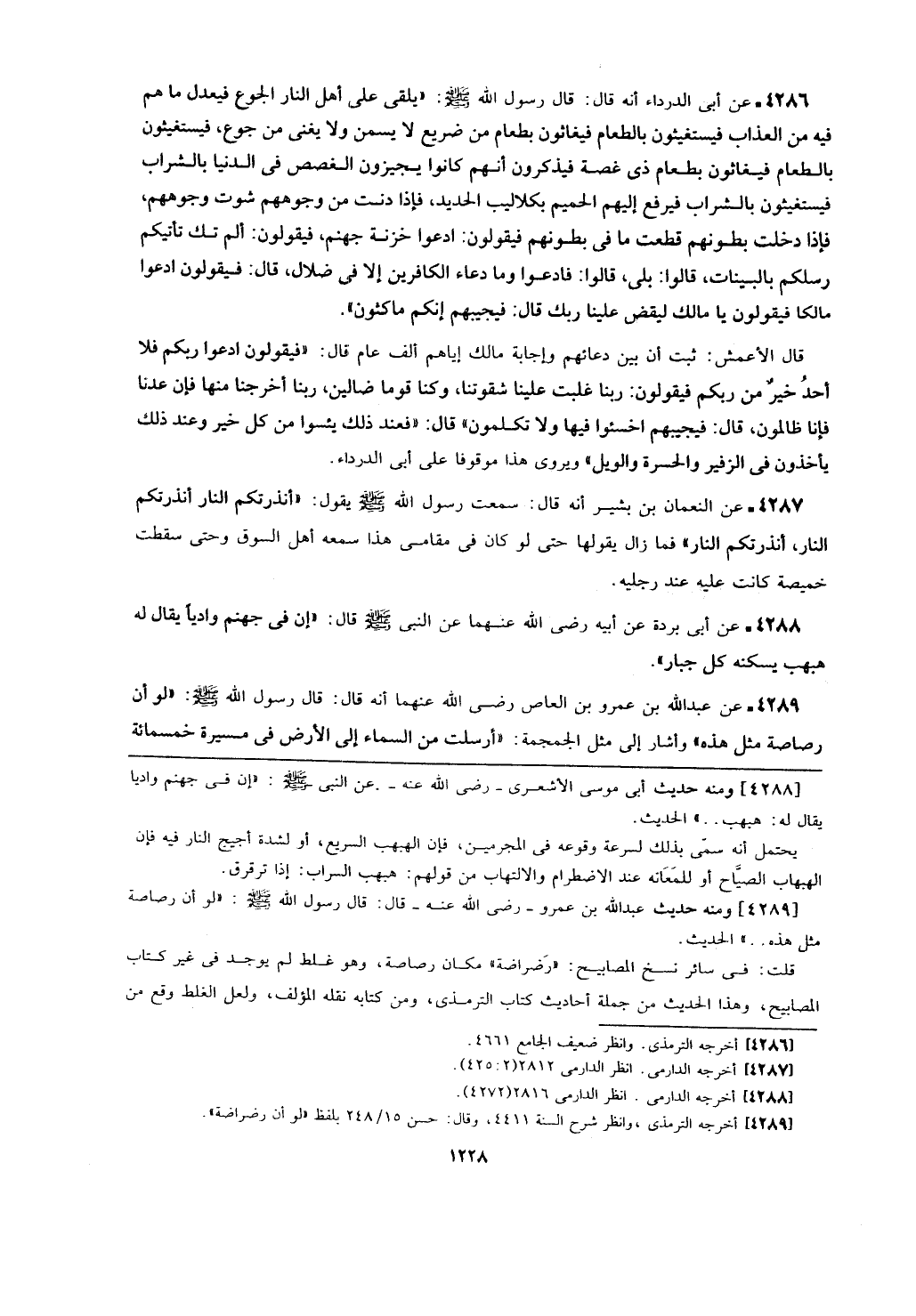[4289] ومنه حديث عبد الله بن عمرو- رضي الله عنه- قال: قال رسول الله - صلى الله عليه وسلم -: (لو أن رصاص مثل هذه ..) الحديث.