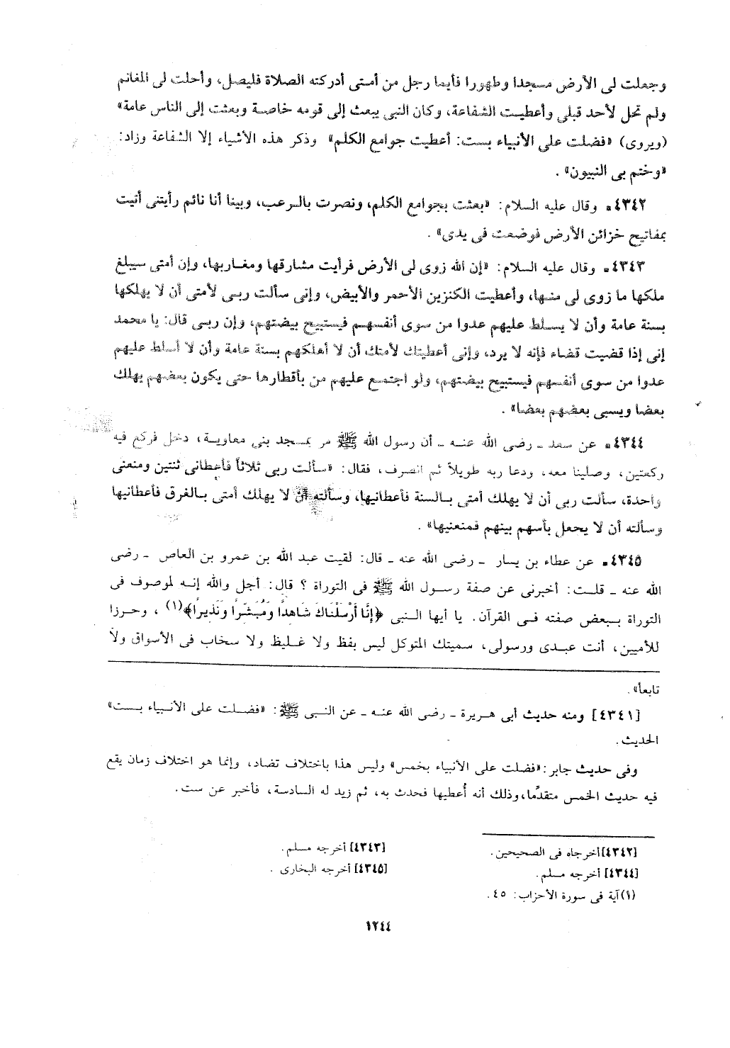[4341] ومنه حديث أبي هريرة- رضي الله عنه- عن النبي - صلى الله عليه وسلم -: (فضلت على الأنبياء بست) الحديث.