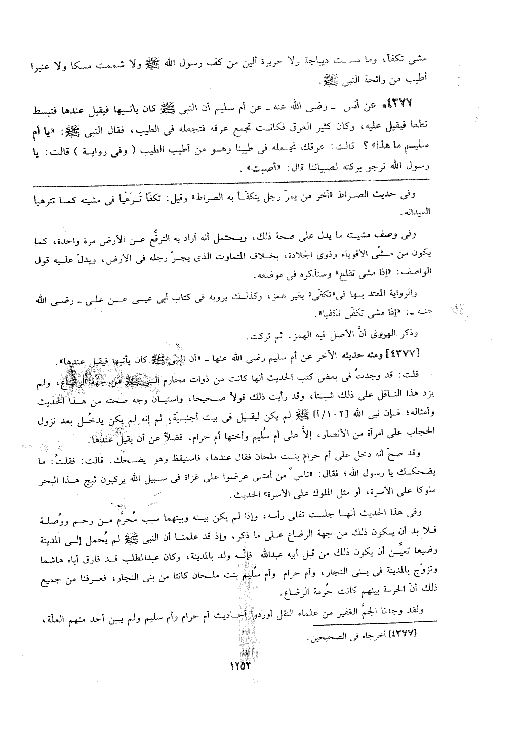 وفي هذا الحديث أنها جلست تفلي رأسه، وإذا لم يكن بينه وبينها سبب محرم من رحم ووصلة فلابد أن يكون ذلك من جهة الرضاع على ما ذكر، وإذا قد علمنا أن النبي - صلى الله عليه وسلم - لم يحمل إلى المدينة رضيعا تعين أن يكون ذلك من قبل أبيه عبد الله فإنه ولد بالمدينة، وكلن عبد المطلب قد فارق أباه هاشما وتزج بالمدينة في بني النجار، وأم حرام وأم سليم بنت ملحان كانتا من بني النجار، فعرفنا من جميع ذلك أن الحرمة بينهم كانت حرمة الرضاع.