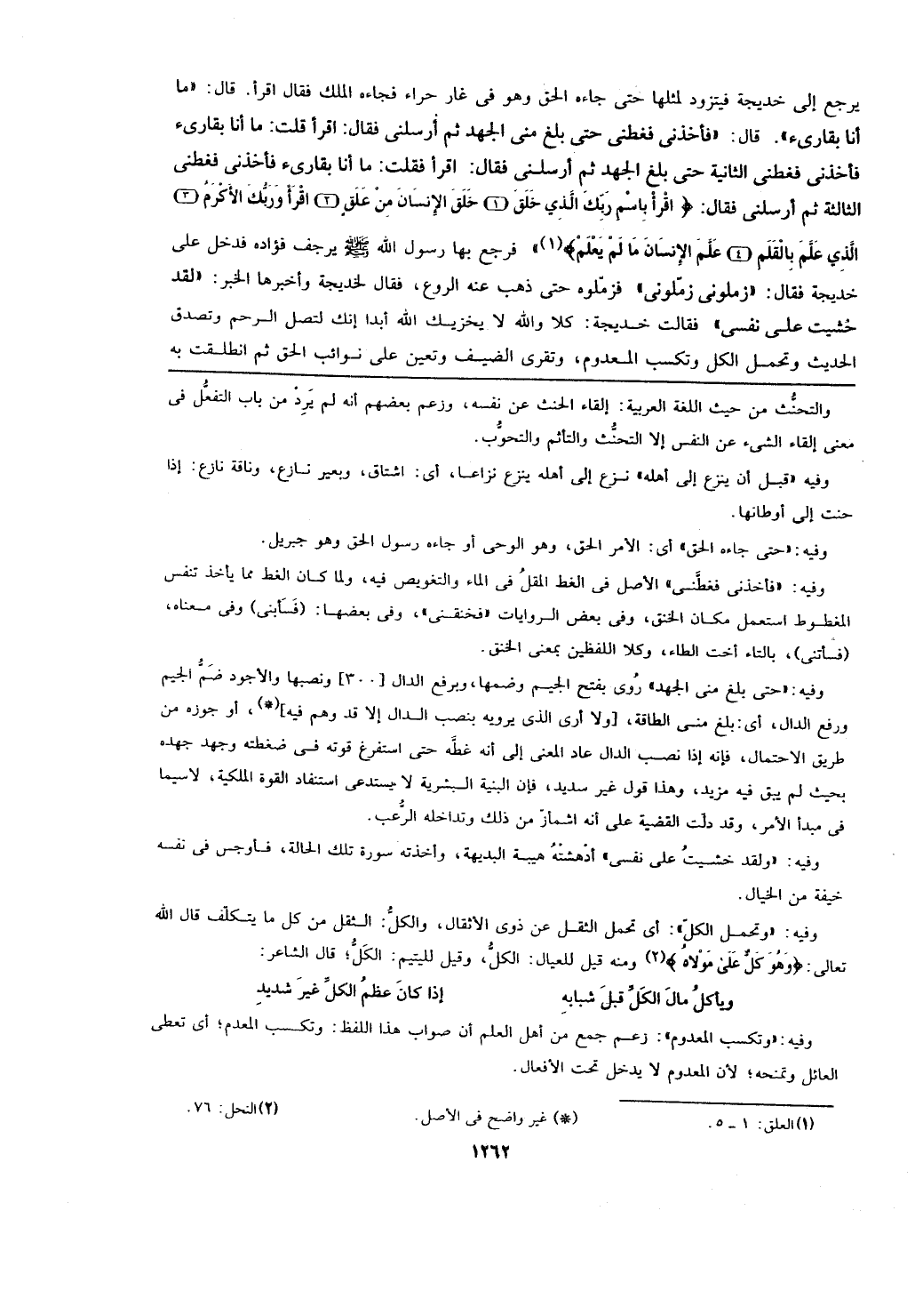 وفيه: (حتى بلغ مني الجهد) روي بفتح الجيم وضمها، وبرفع الدال [300] ونصبها والأجود ضم الجيم ورفع الدال، أي: بلغ مني الطاقة، [ولا أرى الذي يرويه بنصب الدال إلا قد وهم فيه]، أو جوزه من طريق الاحتمال، فإنه إذا نصب الدال عاد المعنى إلى أنه غطه حتى استفرغ قوته في ضغطته وجهد جهده بحيث لم يبق فيه مزيد، وهذا قول غير سديد، فإن البنية البشرية لا يستدعي استنفاد القوة الملكية، لاسيما في مبدأ الأمر، وقد دلت القضية على أنه اشمأز من ذلك وتداخله الرعب.