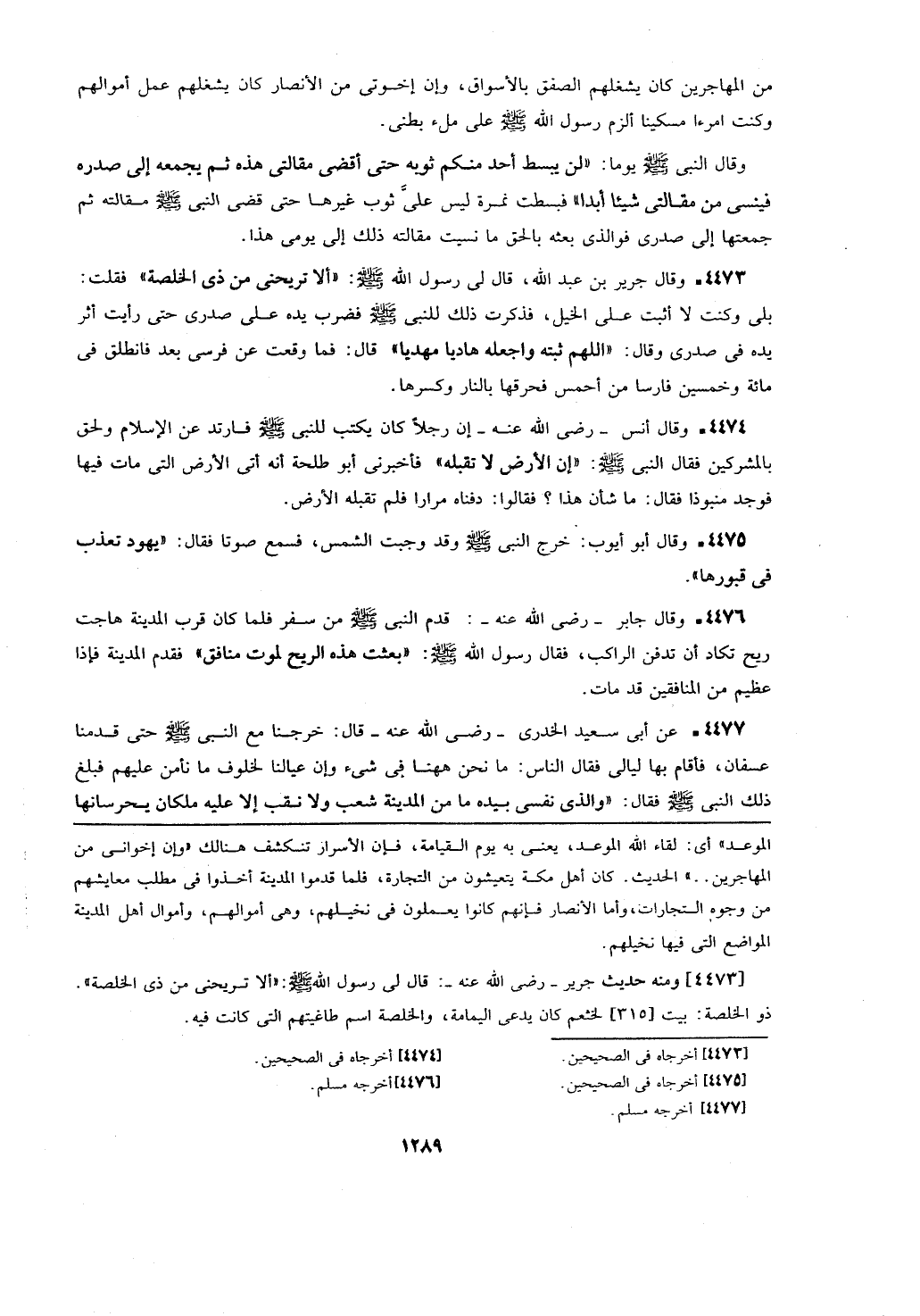 [4473] ومنه حديث جرير- رضي الله عنه-: قال لي رسول الله - صلى الله عليه وسلم -: (ألا تريحني من ذي الخلصة). ذو الخلصة: بيت [315] لخثعم كان يدعى اليمامة، والخلصة اسم طاغيتهم التي كانت فيه.