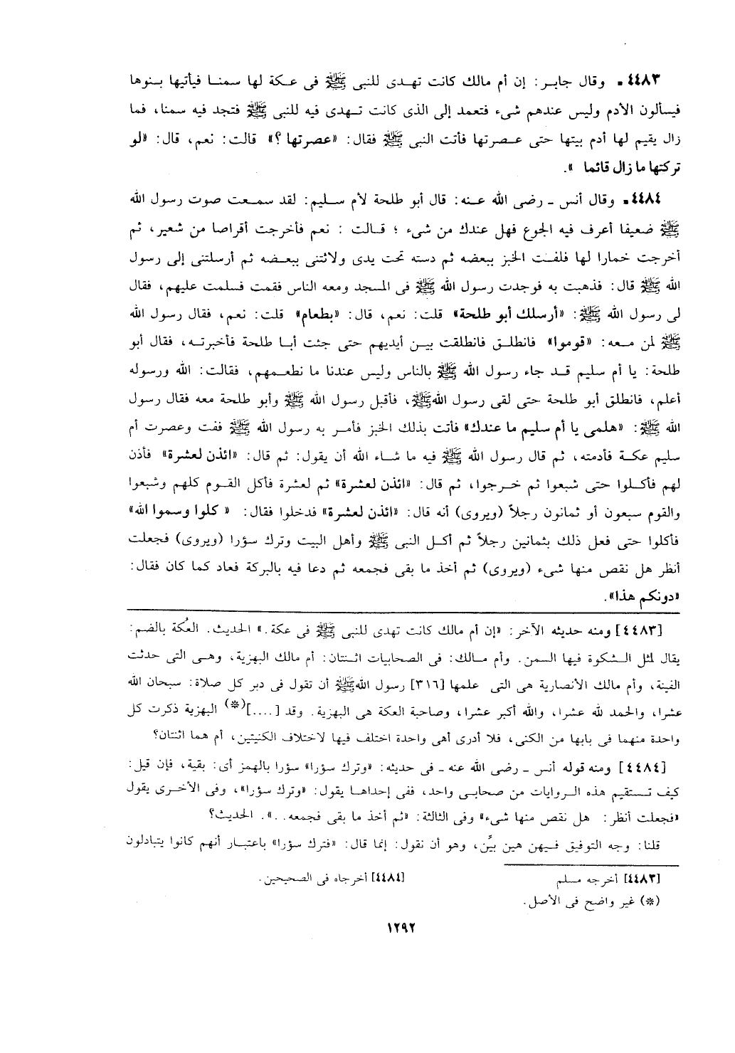 [4484] ومنه قول أنس- رضي الله عنه- في حديثه: (وترك سؤرا) سؤرا بالهمز أي: بقية، فإن قيل: كيف تستقيم هذه الروايات من صحابي واحد، ففي إحداها يقول: (وترك سؤرا)، وفي الأخرى يقول (فجعلت أنظر: هل نقص منها شيء) وفي الثالثة: (ثم أخذ ما بقى فجمعه ...). الحديث؟