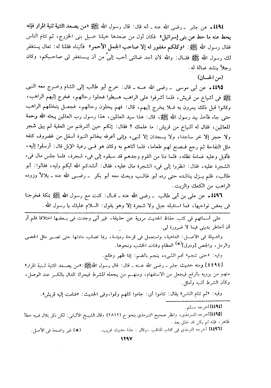[4494] ومنه حديث جابر- رضي الله عنه- قال: قال رسول الله - صلى الله عليه وسلم -: (من يصعد الثنية ثنية المرار) منهم من يرويه بالرفع فيجعل من الاستفهام، ومنهم من يجعله للشرط فيحرك الدال بالكسر عند الوصل، وكأن الشرط أشبه وأمثل.