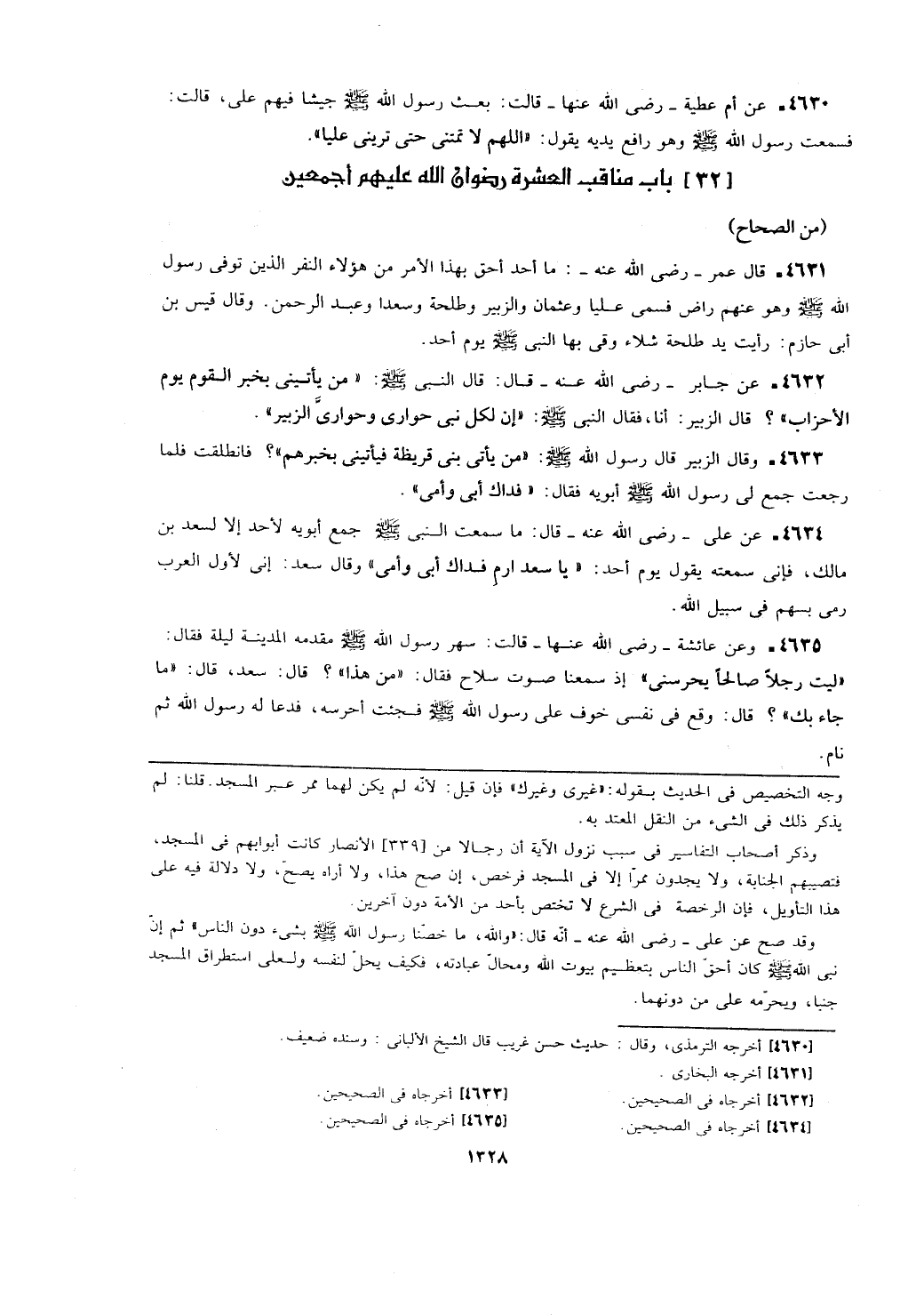 وقد صح عن علي- رضي الله عنه- أنه قال: (والله، ما خصنا رسول الله - صلى الله عليه وسلم - بشيء دون الناس) ثم إن نبي الله - صلى الله عليه وسلم - كان أحق الناس بتعظيم بيوت الله ومحال عبادته، فكيف يحل لنفسه ولعلى استطراق المسجد جنبا، ويحرمه على من دونهما.