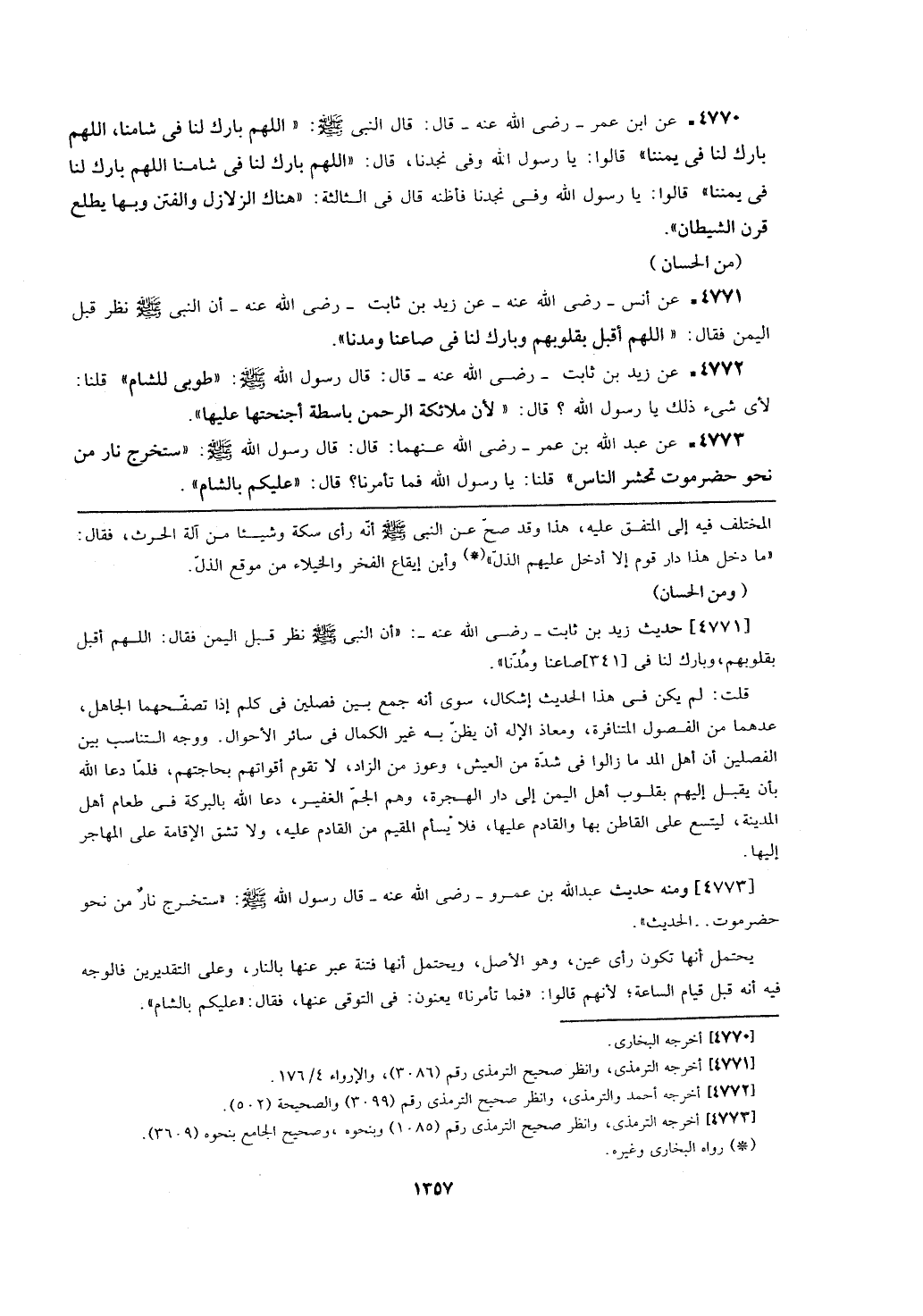 [4771] حديث زيد بن ثابت- رضي الله عنه-: (أن النبي - صلى الله عليه وسلم - نظر قبل اليمن فقال: اللهم أقبل بقلوبهم، وبارك لنا في [341] صاعنا ومدنا).