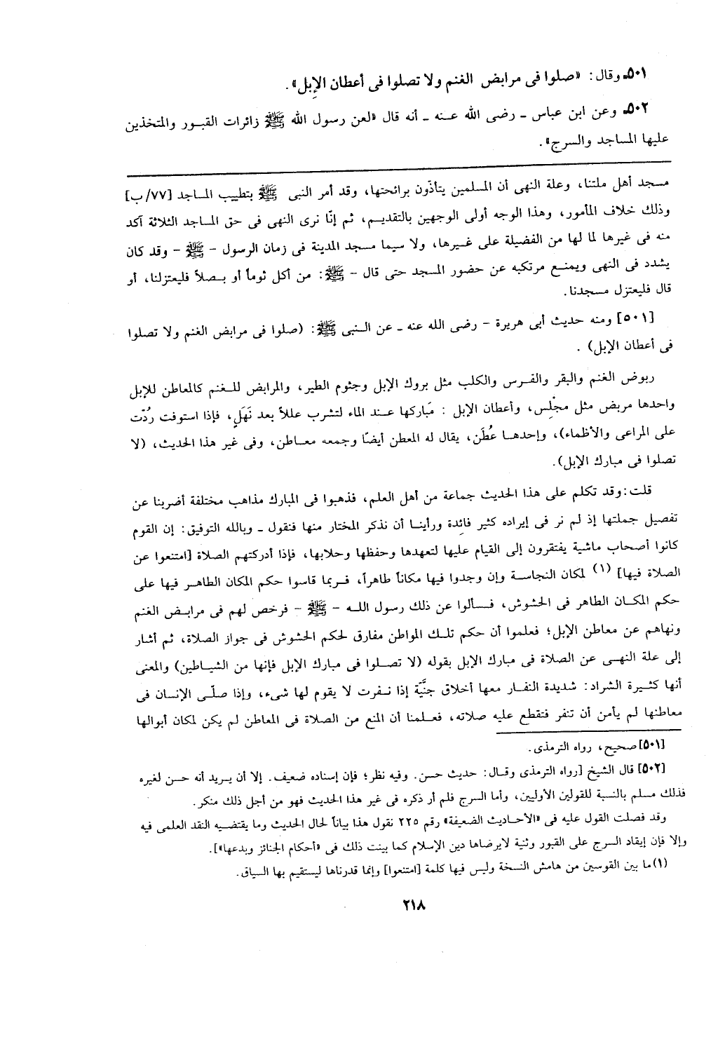 [501] ومنه حديث أبي هريرة- رضي الله عنه- عن النبي - صلى الله عليه وسلم -: (صلوا في مرابض الغنم ولا تصلوا في أعطان الإبل).