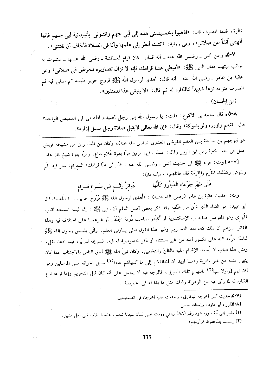 ومنه: حديث عقبة بن عامر (رضي الله عنه): (أهدى لرسول الله - صلى الله عليه وسلم - فروج حرير ...) الحديث قال أبو عبيد: هو القباء الذي شق من خلفه وقد ذكر بعض أهل العلم أن النبي - صلى الله عليه وسلم -: إنما لبسه استمالة لقلب المهدي وهو المقوقس صاحب الإسكندرية أو أكيدر صاحب دومة الجندل أو غيرهما على اختلاف فيه وهذا القائل يزعم أن ذلك كان بعد التحريم وغير هذا القول أولى بأولى العلم، وأنى يلبس رسول الله - صلى الله عليه وسلم - لباسا حرمه الله على ذكور أمته من غير استثناء أو ذكر خصوصية له فيه، ثم إنه لم يرد فيما ادعاه نقل، ومثل هذا الباب لا يحمد الإقدام عليه بالظن والتخمين، وكان نبي الله - صلى الله عليه وسلم - أحق الناس بالاجتناب عما كان ينهي عنه من غير مثنوية و (ما أريد أن أخالفكم إلى ما أنهاكم عنه) سبيل إخوانه من المرسلين وهو أفضلهم [وأولاهم] بانتهاج تلك السبيل، فالوجه فيه أن يحمل على أنه كان قبل التحريم وإنما نزعه نزع الكاره له لما رأى فيه من الرعونة وذلك مثل ما بدا له في الخميصة.