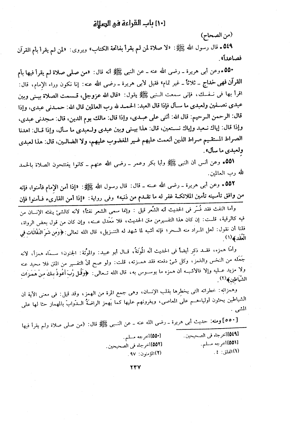 [550] ومنه: حديث أبي هريرة- رضي الله عنه- عن النبي - صلى الله عليه وسلم - قال: (من صلى صلاة ولم يقرأ فيها