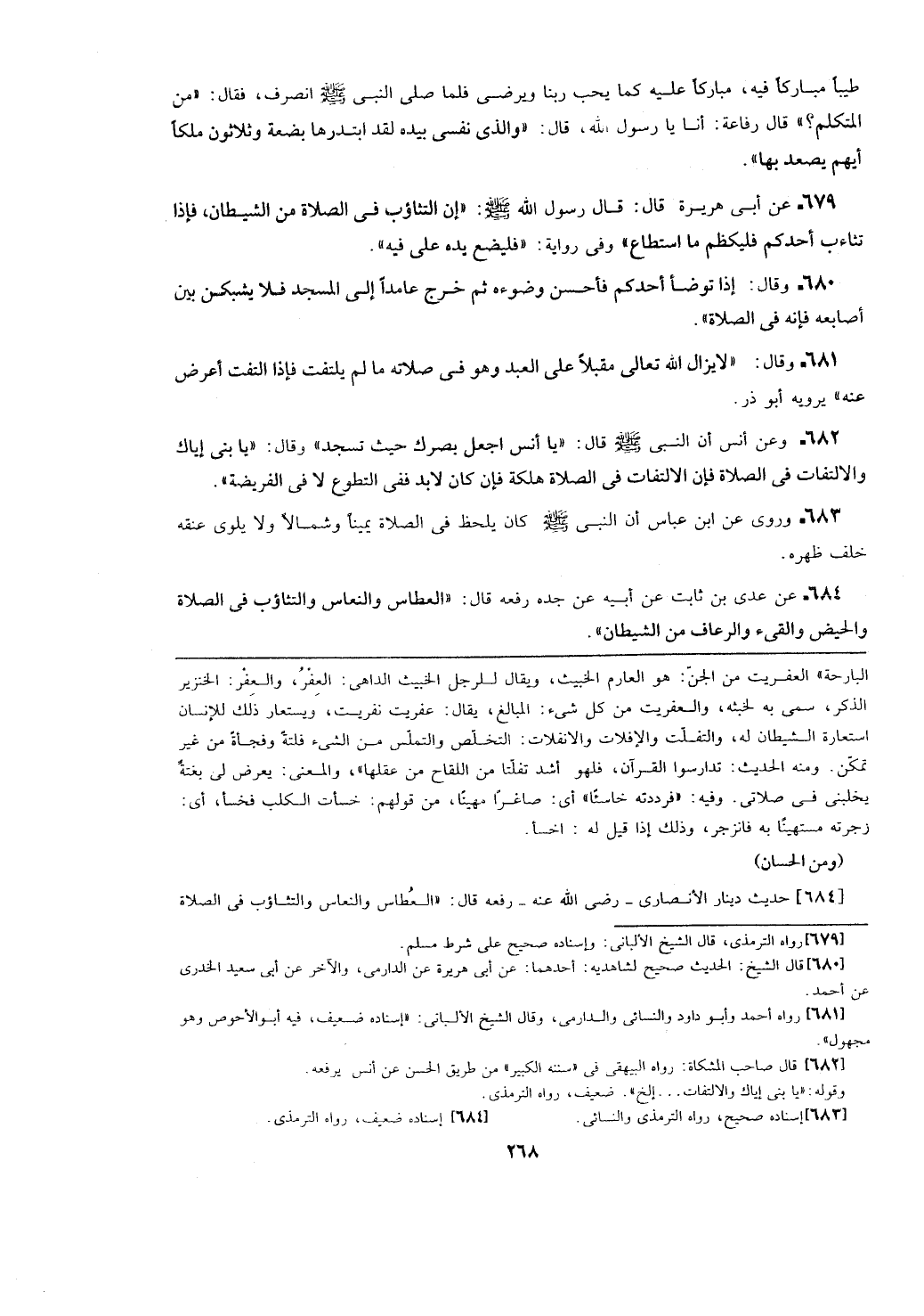 [684] حديث دينار الأنصاري- رضي الله عنه- رفعه قال: (العطاس والنعاس والتثاؤب في الصلاة