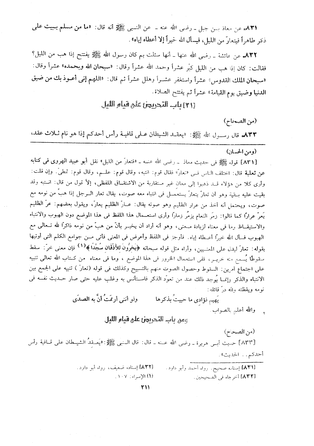 [833] حديث أبي هريرة - رضي الله عنه - قال: قال النبي ?: (يعقد الشيطان على قافية رأس أحدكم ... الحديث).
