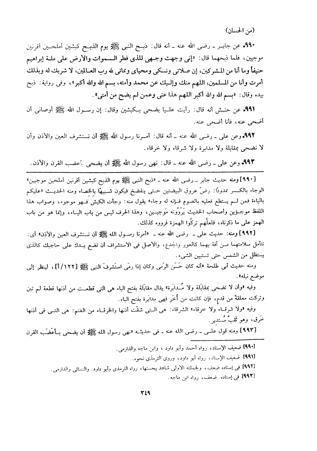 [993] ومنه قول علي - رضي الله عنه - في حديث (نهى رسول الله ?أن يضحي بأعضب القرن