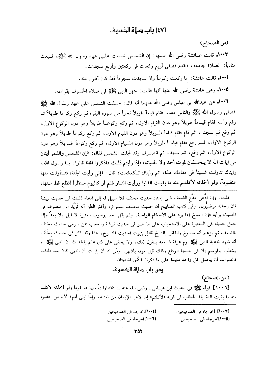 [1006] قوله في حديث ابن عباس - رضي الله عنه -: (فتناولت منها عنقوداً ولو أخذته لأكلتم منه ما بقيت الدنيا) الخطاب في قوله ? (لأكلتم) إما لأهل الإيمان من أمته، وإما لبني آدم؛ لأن من حضره