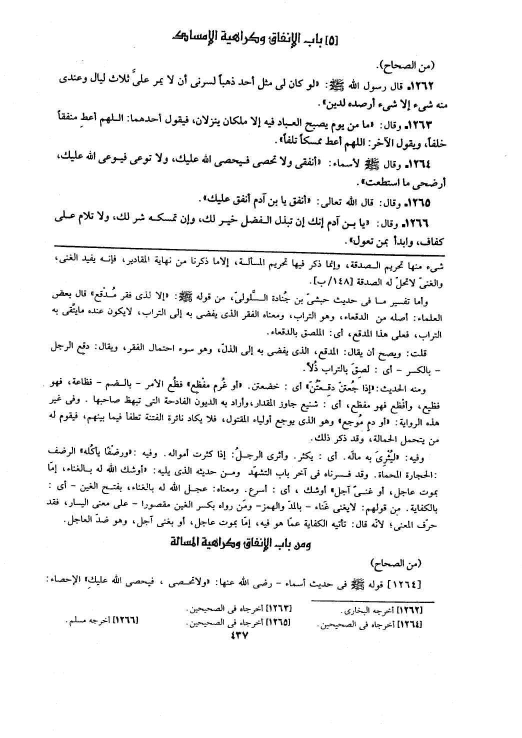 [1264] قوله - صلى الله عليه وسلم - في حديث أسماء- رضي الله عنها: (ولا تحصى، فيحصى الله عليك) الإحصاء: