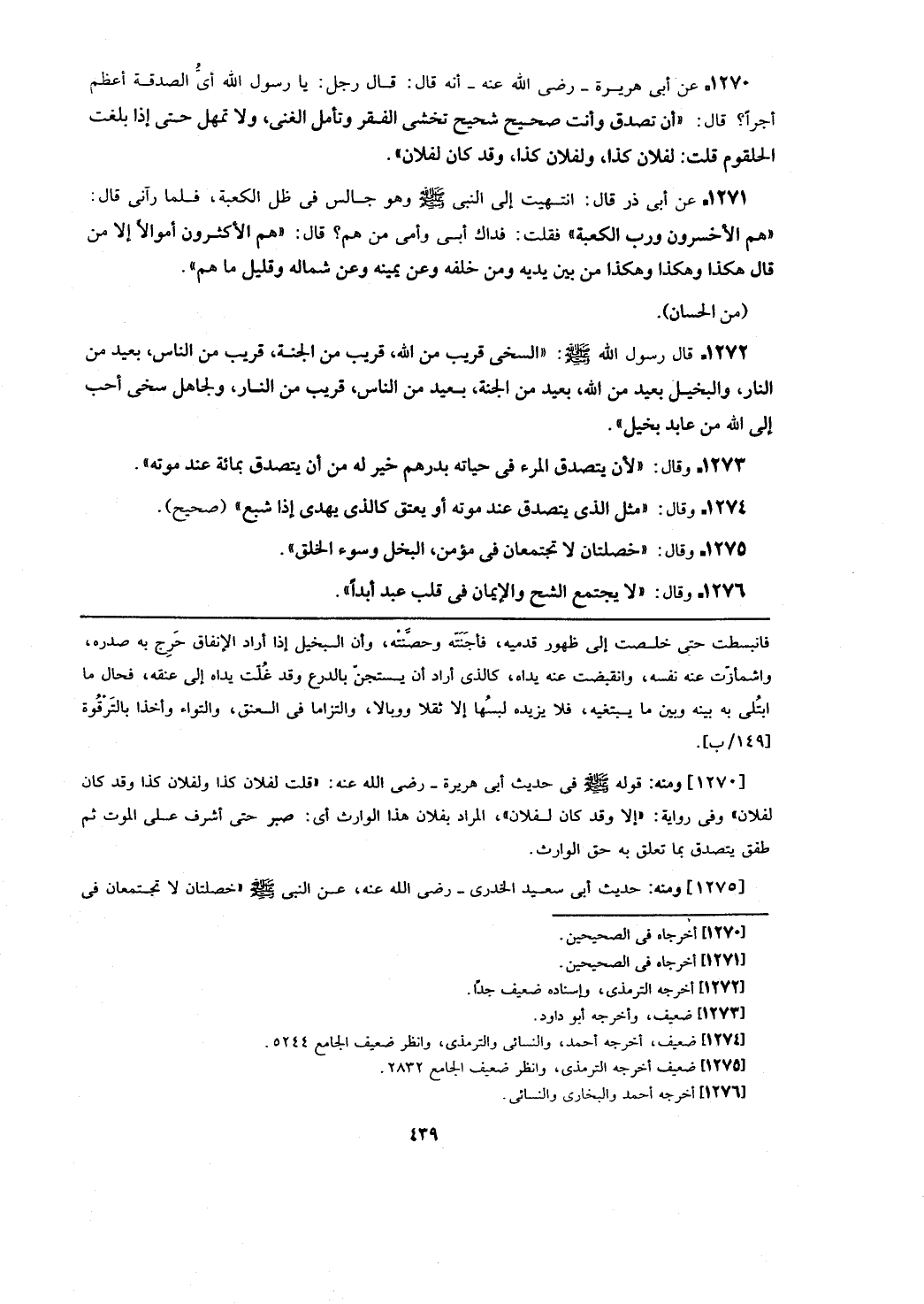 [1270] ومنه: قوله - صلى الله عليه وسلم - في حديث أبي هريرة- رضي الله عنه: (قلت لفلان كذا ولفلان كذا وقد كان لفلان) وفي رواية (إلا وقد كان لفلان)، المراد بفلان هذا الوارث أي: صبر حتى أشرف على الموت ثم طفق يتصدق بما تعلق به حق الوارث.