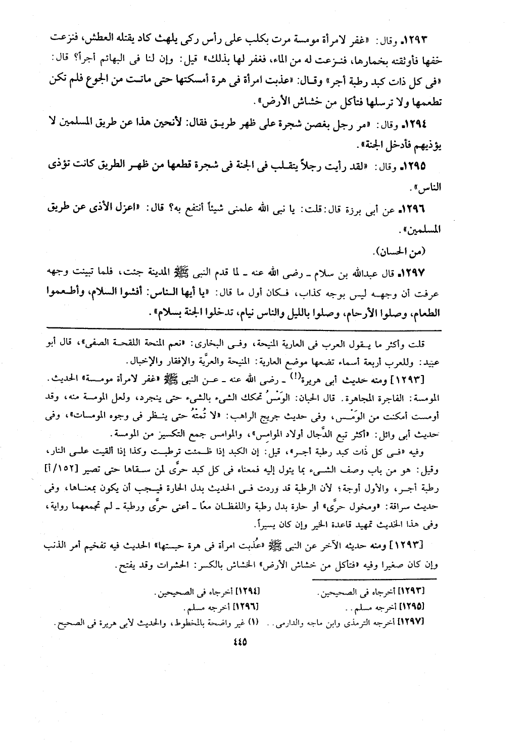 [1293] ومنه حديثه الآخر عن النبي - صلى الله عليه وسلم - (عذبت امرأة في هرة حبستها) الحديث فيه تفخيم أمر الذنب وإن كان كان صغيرا وفيه (فتأكل من خشاش الأرض) الخشاش بالكسر: وقد يفتح.