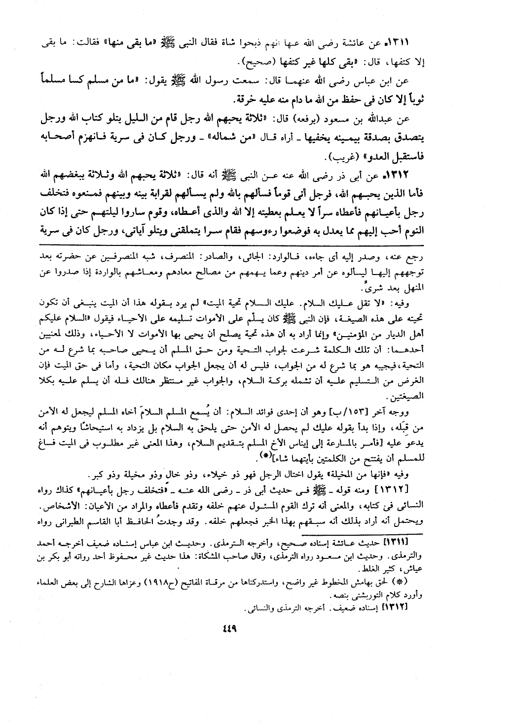[1312] ومنه قوله - صلى الله عليه وسلم - في حدثي أبي ذر- رضي الله عنه- (فتخلف رجل بأعيانهم) كذاك رواه النسائي في كتابه، والمعني أنه ترك القوم المسئول عنهم خلفه وتقدم فأعطاه والمراد من الأعيان: الأشخاص. ويحتمل أنه أراد بذلك أنه سبقهم بهذا الخبر فجعلهم فجعله. وقد وجدت الحافظ أبا القاسم الطبراني رواه.