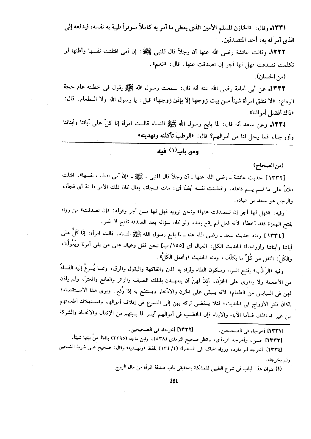 وفيه (الرطب) بفتح الراء وسكون الطاء وأراد به اللبن والفاكهة والبقول والمرق، ومما يسرع إليه الفساد من الأطعمة ولا يتقوى على الخزن، أذن لهن أن يتعهدن بذلك الضيف والزائر والقانع والمعتر، ولم يأذن لهن في اليابس من الطعام؛ لأنه يبقي على الخزن والادخار وينتفع به إذا رفع. ويرى هذا الاستقصاء؛ لمكان ذكر الأزواج في الحديث؛ لئلا يفضي تركه بهن إلى التسرع في إتلاف أموالهم واستهلاك أطعمتهم من غير استئذان فأما الآباء والأبناء فإن الخطب في أموالهم أيسر لما بينهم من الإنفال والاتحاد والشركة