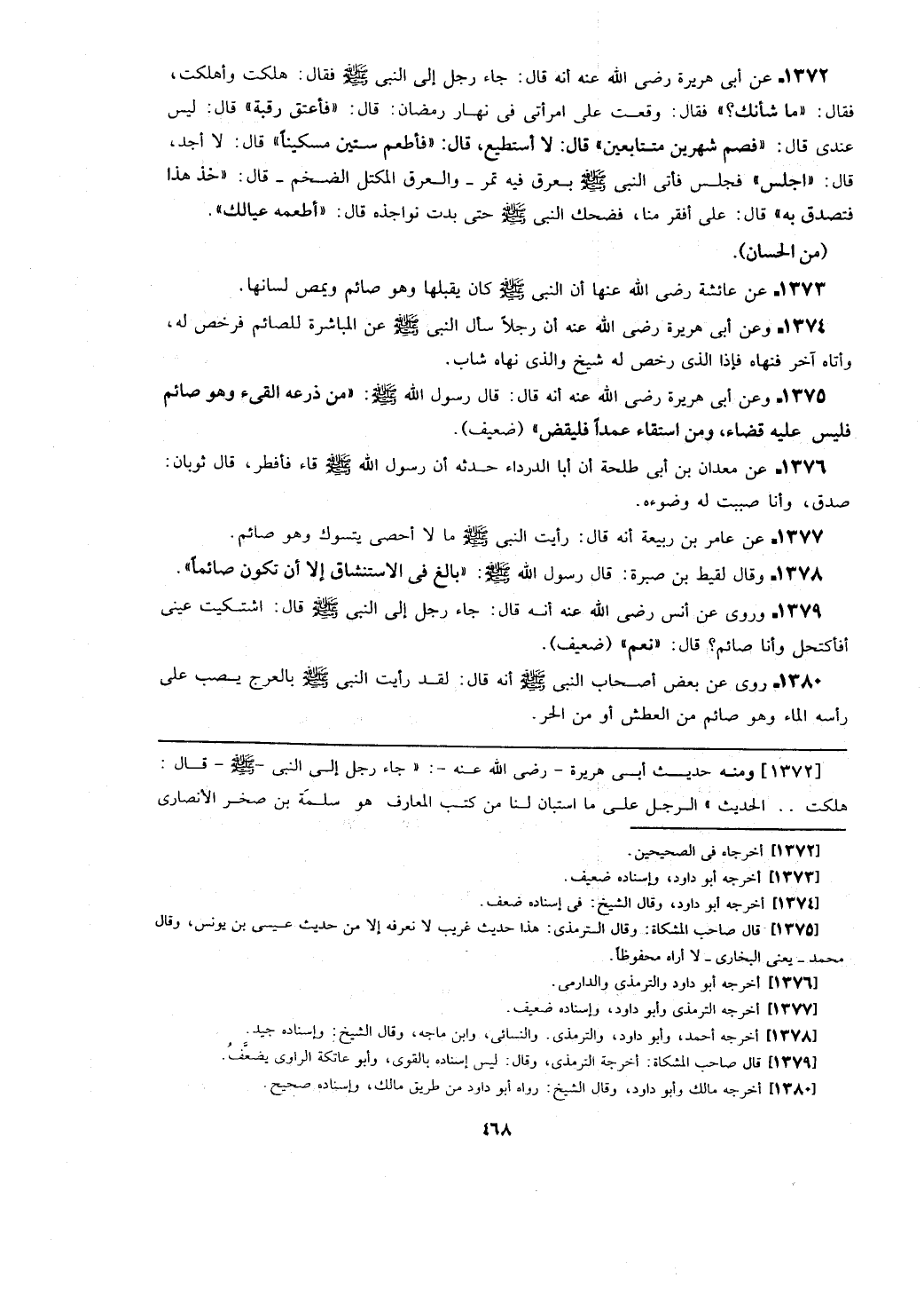 [1372] ومنه حديث أبي هريرة -رضى الله عنه-: (جاء رجل إلى النبي - صلى الله عليه وسلم - قال: هلكت .. الحديث) الرجل على ما استبان لنا من كتب المعارف هو سلمة بن صخر الأنصاري