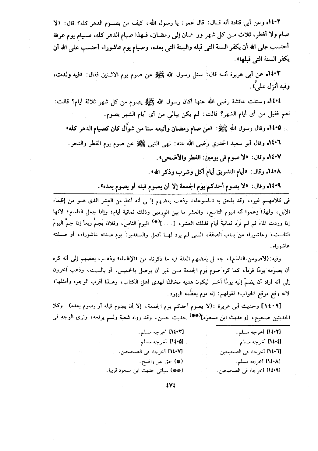 [1409] وحديث أبي هريرة: (لا يصوم أحدكم يوم الجمعة، إلا أن يصوم بعده).