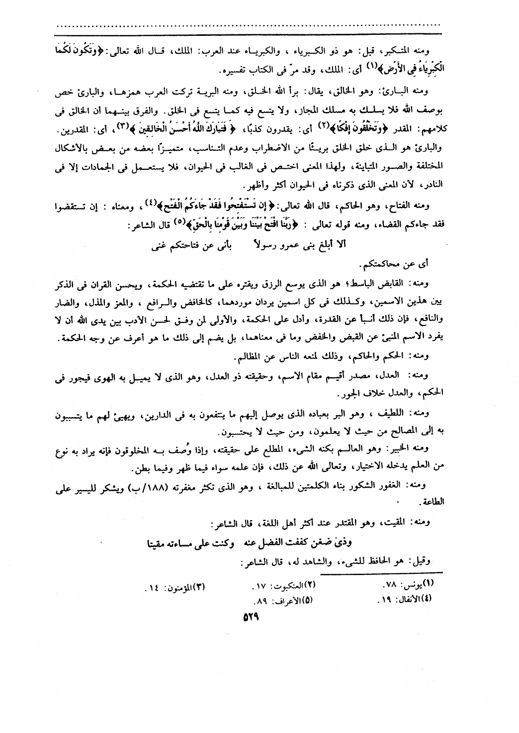 ومنه الفتاح، وهو الحاكم، قال الله تعالى: {إن تستفتحوا فقد جاءكم الفتح}، ومعناه: إن تستقضوا فقد جاكم قضاء الله، ومنه قوله تعالى: {ربنا افتح بيننا وبين قومنا بالحق} قال الشاعر: