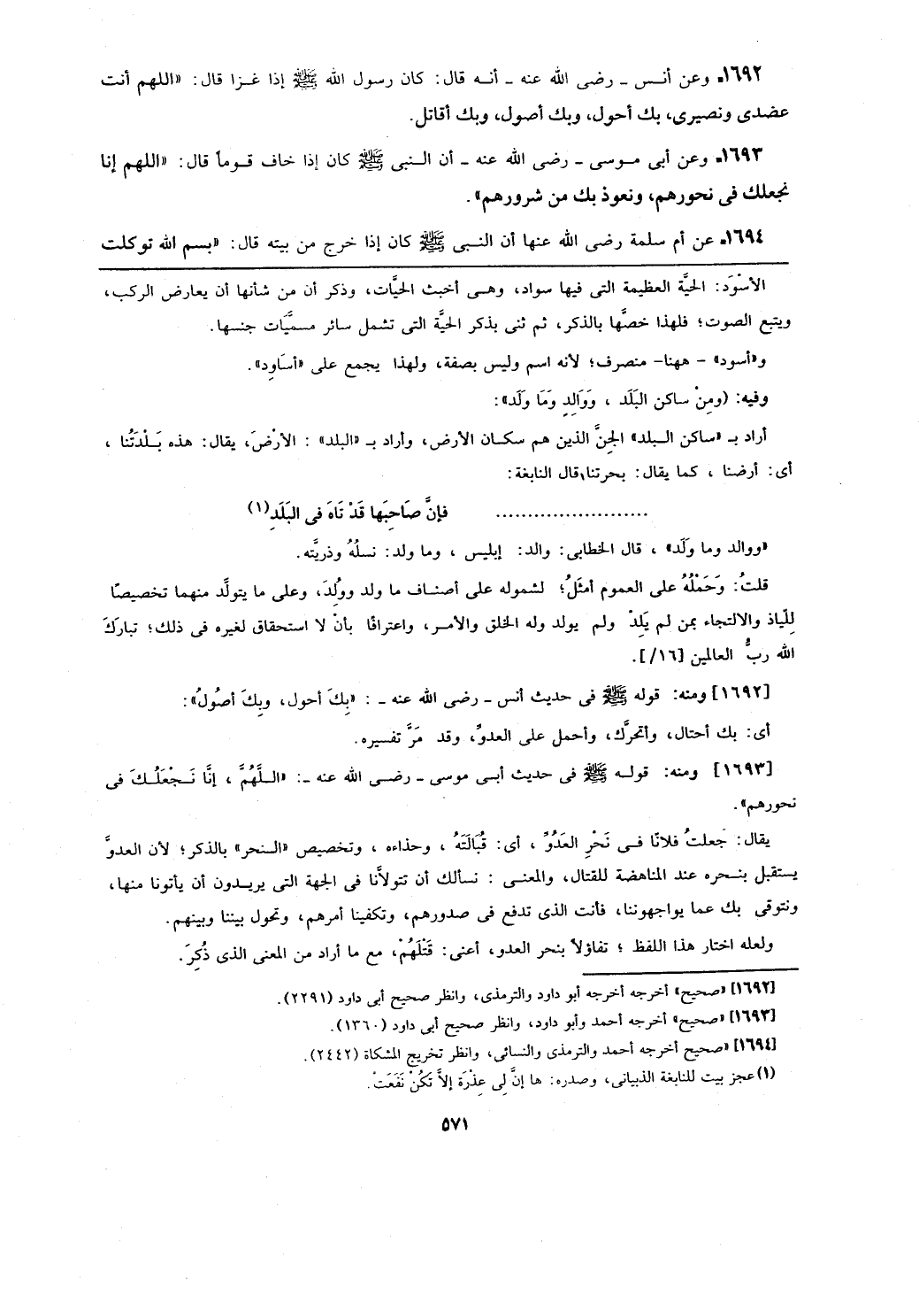 [1693] ومنه: قوله - صلى الله عليه وسلم - في حديث أبي موسى- رضي الله عنه-: (اللهم، إنا نجعلك في نحورهم).