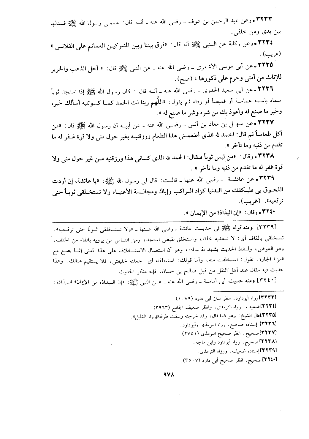 [3240] ومنه حديث أبي أمامة-رضي الله عنه- عن النبي - صلى الله عليه وسلم -: (إن البذاذة من الإيمان) البذاذة: