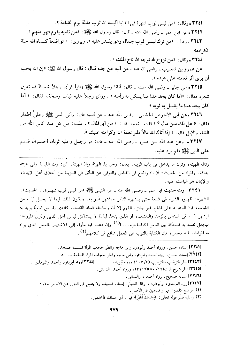 [3241] ومنه حديث ابن عمر- رضي الله عنه- عن النبي - صلى الله عليه وسلم - (من لبس ثوب شهرة ... الحديث). الشهرة: ظهور الشيء في شنعة حتى يشهره الناس ويشتهر هو به، ويكون ذلك فيما لا يحل لبسه من الثياب، فإن الوعيد على المباح غير جائز، اللهم إلا أن يدخله فساد القصد، كالذي يلبس لباسا يريد به ليشهر نفسه في الناس والزهد والتقشف، أو الذي يتخذ لباسا لا يشاكل لباس أهل الدين وذوي المروءة؛ ليجعل نفسه به ضحكة بين الناس [كالمساخرة] وإن ذهب فيه مأول إلى الاشتهار بالعمل الذي يراد به المراءاة، فله محمل؛ فإن الكناية بالثوب عن العمل شائع في كلامهم.