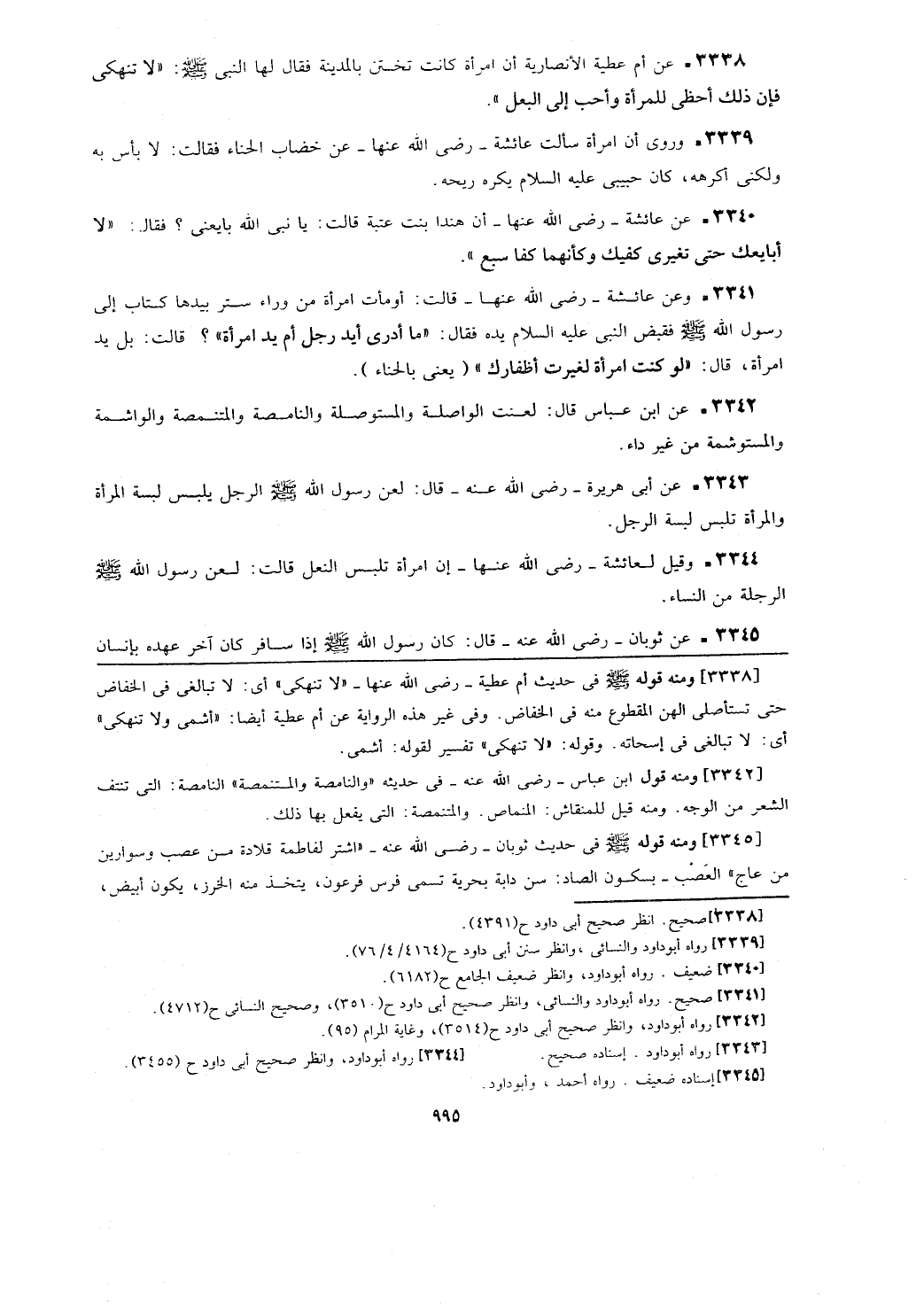 [3342] ومنه قوله ابن عباس- رضي الله عنه- في حديثه (والنامصة والمتنمصة) النامصة: التي تنتف الشعر من الوجه. ومنه قيل للمنقاش: المنماص. والمتنمصة: التي يفعل بها ذلك.