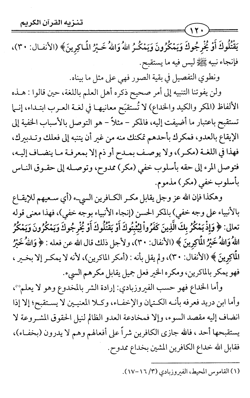 يَقْتُلُوكَ أَوْ يُخْرِجُوكَ وَيَمْكُرُونَ وَيَمْكُرُ اللهُ وَاللهُ خَيْرُ الْمَاكِرِينَ} (الأنفال: 30)، ولأجل ذلك قال الله عن فعله: {وَاللهُ خَيْرُ الْمَاكِرِينَ} (الأنفال: 30)، ولم يقل بأنه: (أمكر الماكرين)، لأنه لا يمكر إلا بخير، فهو يمكر بالماكرين، ومكره الخير فعل جميل يقابل مكرهم السيء.