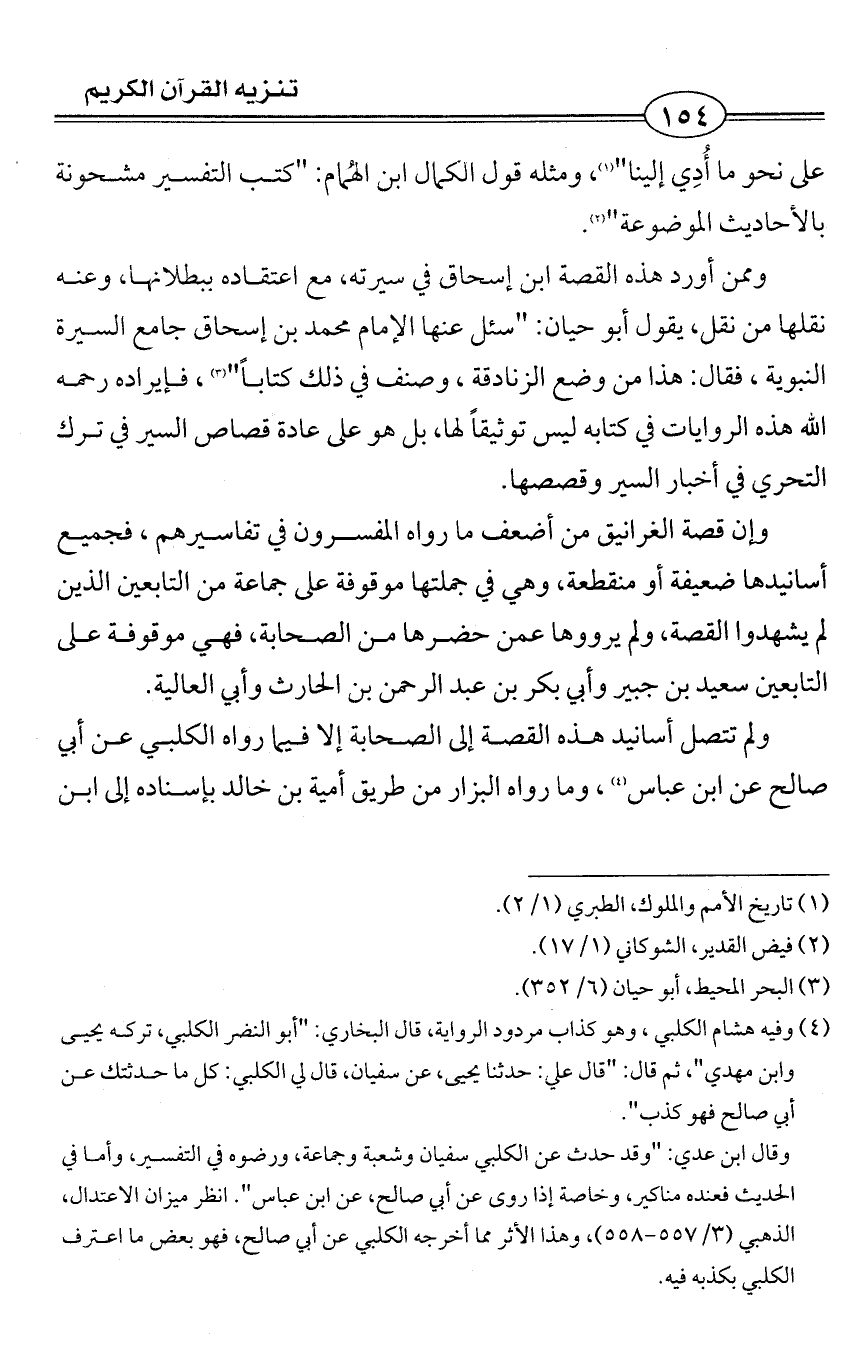 وممن أورد هذه القصة ابن إسحاق في سيرته، مع اعتقاده ببطلانها، وعنه نقلها من نقل، يقول أبو حيان: "سئل عنها الإمام محمد بن إسحاق جامع السيرة النبوية، فقال: هذا من وضع الزنادقة، وصنف في ذلك كتاباً" (¬3)، فإيراده رحمه الله هذه الروايات في كتابه ليس توثيقاً لها، بل هو على عادة قصاص السير في ترك التحري في أخبار السير وقصصها.