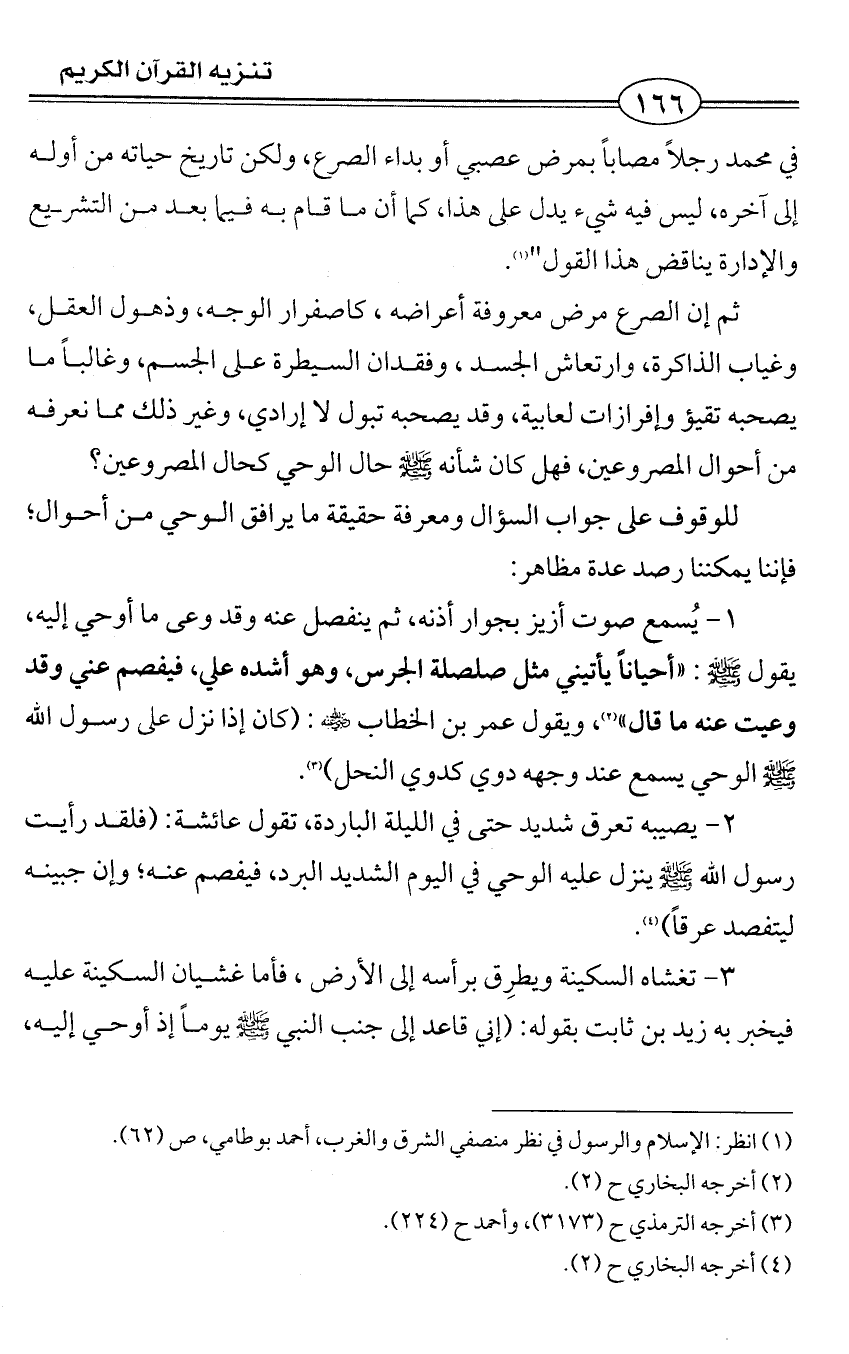 في محمد رجلاً مصاباً بمرض عصبي أو بداء الصرع، ولكن تاريخ حياته من أوله إلى آخره، ليس فيه شيء يدل على هذا، كما أن ما قام به فيما بعد من التشريع والإدارة يناقض هذا القول" (¬1).
