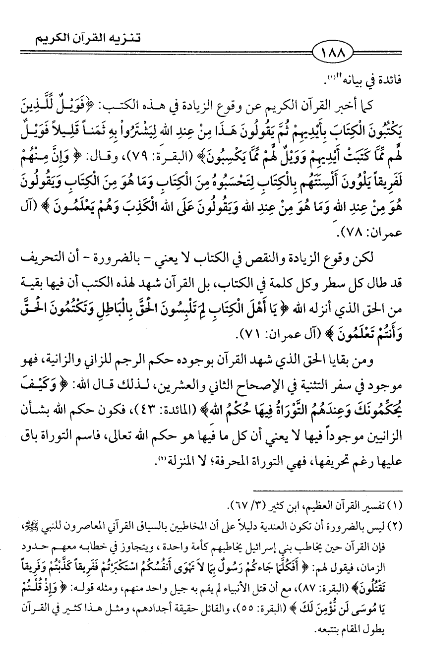 كما أخبر القرآن الكريم عن وقوع الزيادة في هذه الكتب: {فَوَيْلٌ لِّلَّذِينَ يَكْتُبُونَ الْكِتَابَ بِأَيْدِيهِمْ ثُمَّ يَقُولُونَ هَذَا مِنْ عِندِ اللهِ لِيَشْتَرُوا بِهِ ثَمَناً قَلِيلاً فَوَيْلٌ لَّهُم مِّمَّا كَتَبَتْ أَيْدِيهِمْ وَوَيْلٌ لَّهُمْ مِّمَّا يَكْسِبُونَ} (البقرة: 79)، وقال: {وَإِنَّ مِنْهُمْ لَفَرِيقاً يَلْوُونَ أَلْسِنَتَهُم بِالْكِتَابِ لِتَحْسَبُوهُ مِنَ الْكِتَابِ وَمَا هُوَ مِنَ الْكِتَابِ وَيَقُولُونَ هُوَ مِنْ عِندِ اللهِ وَمَا هُوَ مِنْ عِندِ الله وَيَقُولُونَ عَلَى الله الْكَذِبَ وَهُمْ يَعْلَمُونَ} (آل عمران: 78).