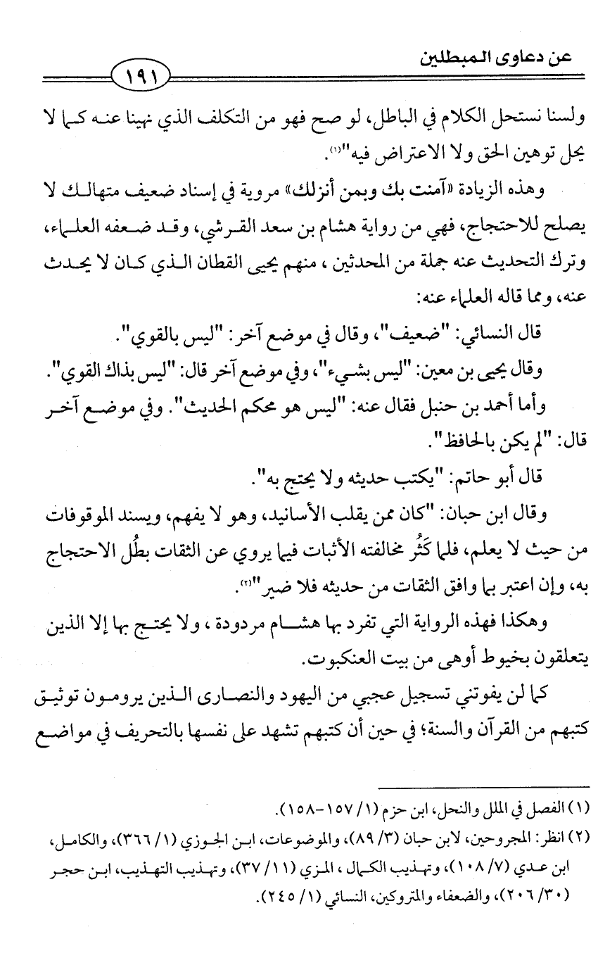 وهكذا فهذه الرواية التي تفرد بها هشام مردودة، ولا يحتج بها إلا الذين يتعلقون بخيوط أوهى من بيت العنكبوت.