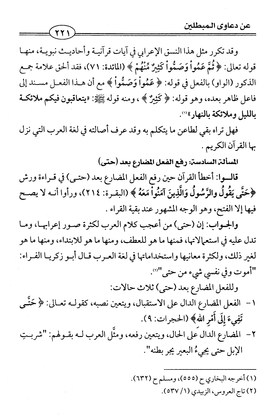المسألة السادسة: رفع الفعل المضارع بعد (حتى)