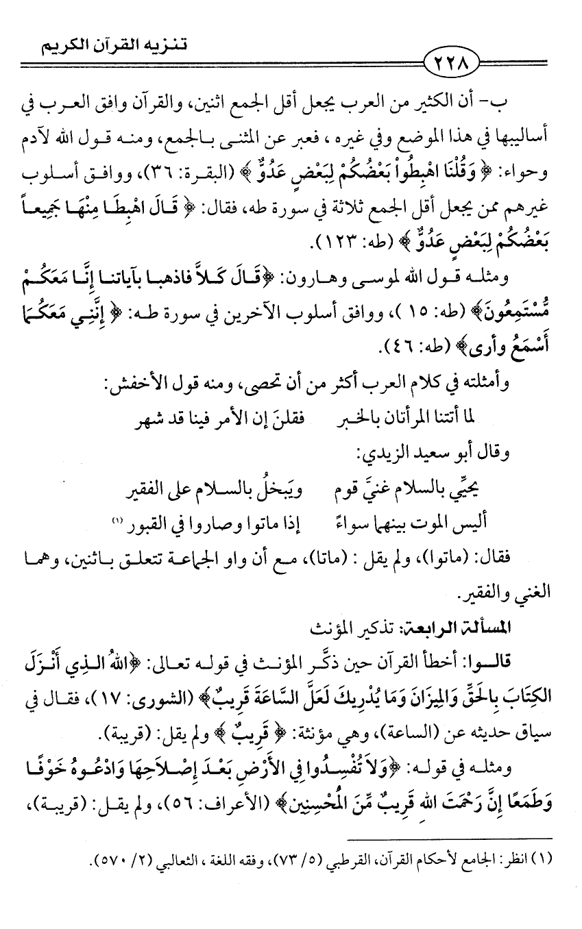 (¬1) انظر: الجامع لأحكام القرآن، القرطبي (5/ 73)، وفقه اللغة، الثعالبي (2/ 570).