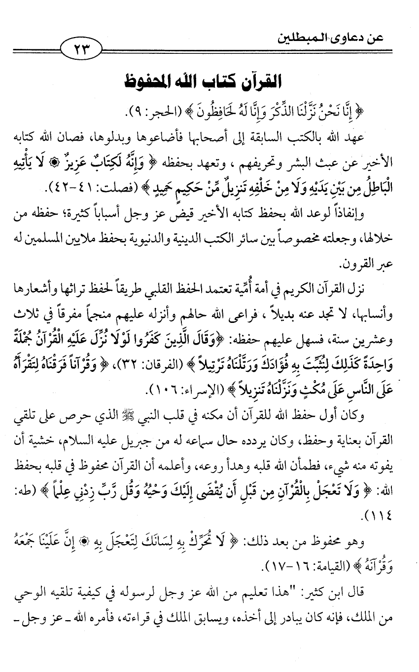 {إِنَّا نَحْنُ نَزَّلْنَا الذِّكْرَ وَإِنَّا لَهُ لَحَافِظُونَ} (الحجر: 9).