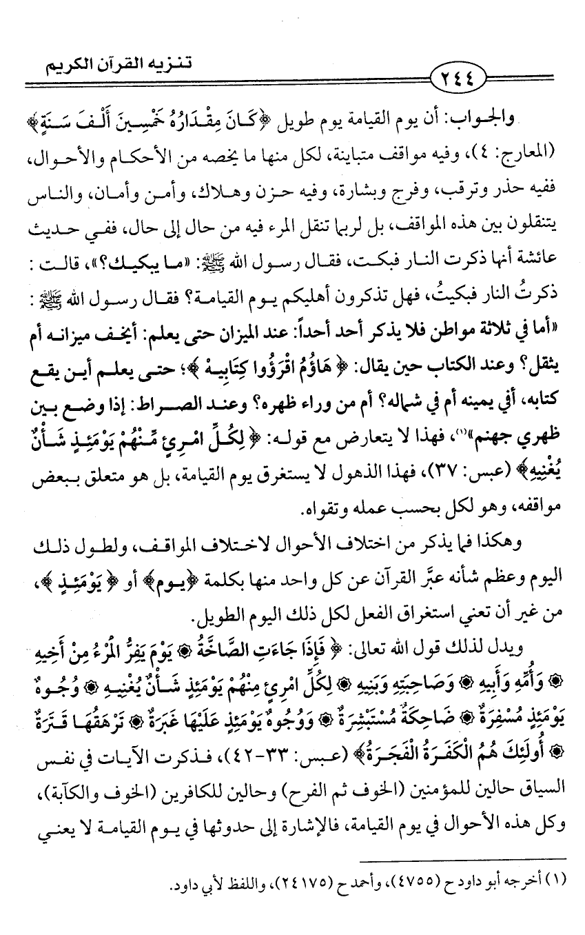 وهكذا فما يذكر من اختلاف الأحوال لاختلاف المواقف، ولطول ذلك اليوم وعظم شأنه عبَّر القرآن عن كل واحد منها بكلمة {يوم} أو {يَوْمَئِذٍ}، من غير أن تعني استغراق الفعل لكل ذلك اليوم الطويل.