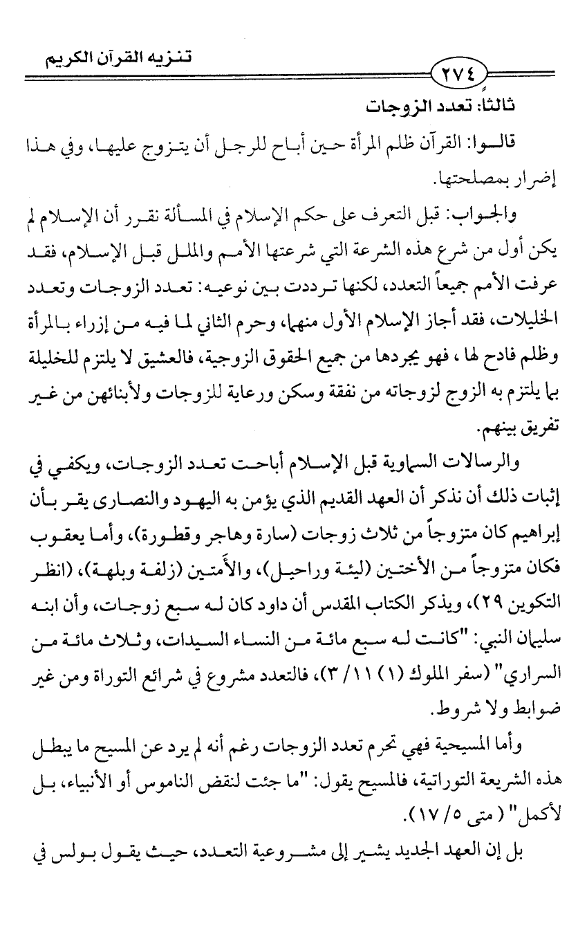بل إن العهد الجديد يشير إلى مشروعية التعدد، حيث يقول بولس في