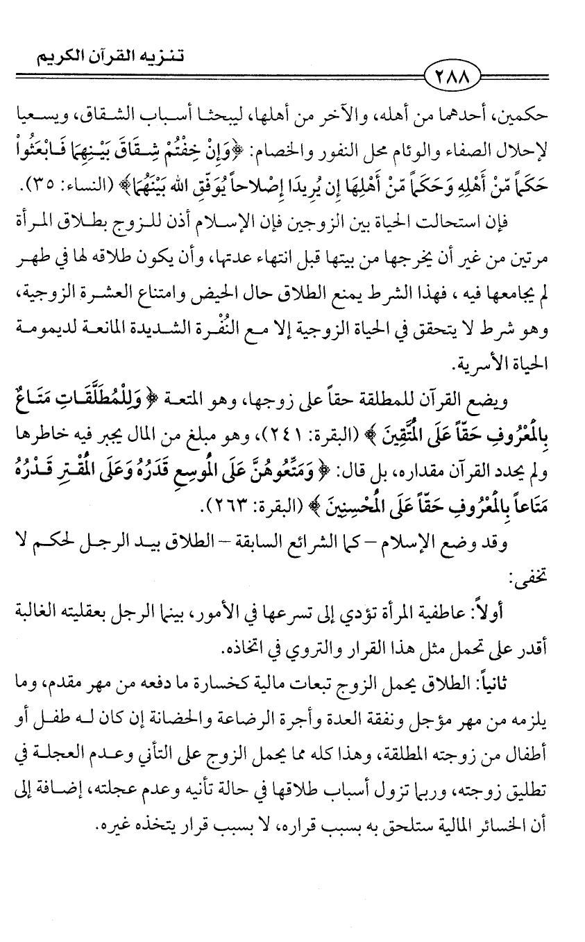 ثانياً: الطلاق يحمل الزوج تبعات مالية كخسارة ما دفعه من مهر مقدم، وما يلزمه من مهر مؤجل ونفقة العدة وأجرة الرضاعة والحضانة إن كان له طفل أو أطفال من زوجته المطلقة، وهذا كله مما يحمل الزوج على التأني وعدم العجلة في تطليق زوجته، وربما تزول أسباب طلاقها في حالة تأنيه وعدم عجلته، إضافة إلى أن الخسائر المالية ستلحق به بسبب قراره، لا بسبب قرار يتخذه غيره.