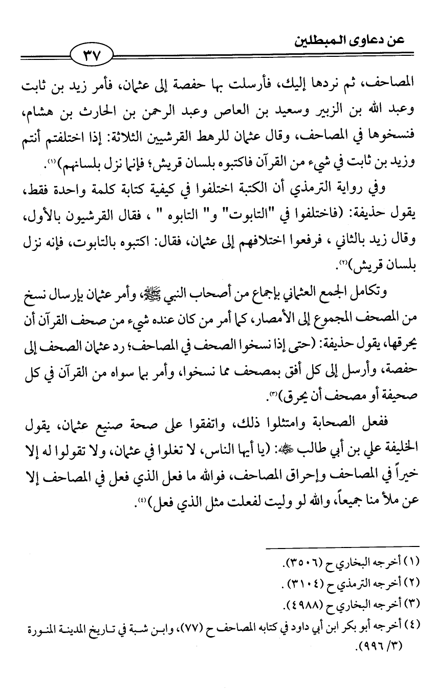 (¬4) أخرجه أبو بكر ابن أبي داود في كتابه المصاحف ح (77)، وابن شبة في تاريخ المدينة المنورة (3/ 996).